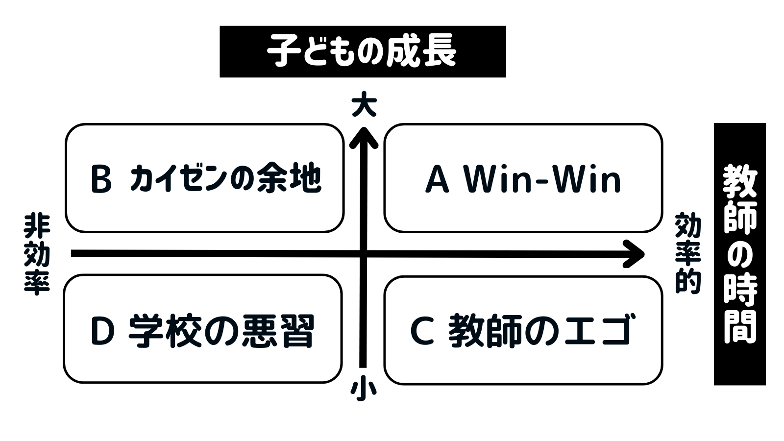 縦軸が“子どもの成長への効果”、横軸が“教師の時間”です。」